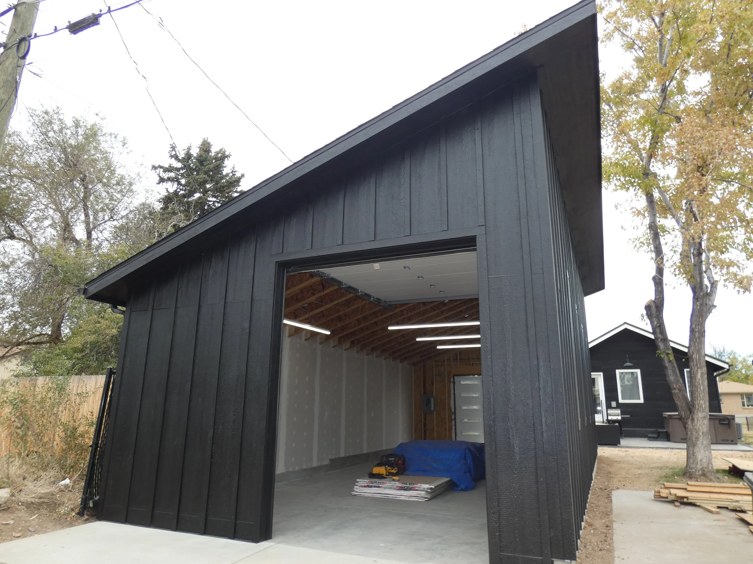 We designed and built this garage for our client in the Barnum neighborhood. We designed the structure with a single slope roof facing the south for future solar advantages. The garage also features a large ceiling height for additional storage space and a tall garage door for large vehicle entry!